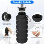 - LEAK-PROOF AND EASY TO CLEAN: The cup lid is made of stainless steel with silicone seal ring. The use of these materials ensures that this foldable water bottle is leakproof. further improving its utility. The wide mouth design of the bottle makes it easier to clean.